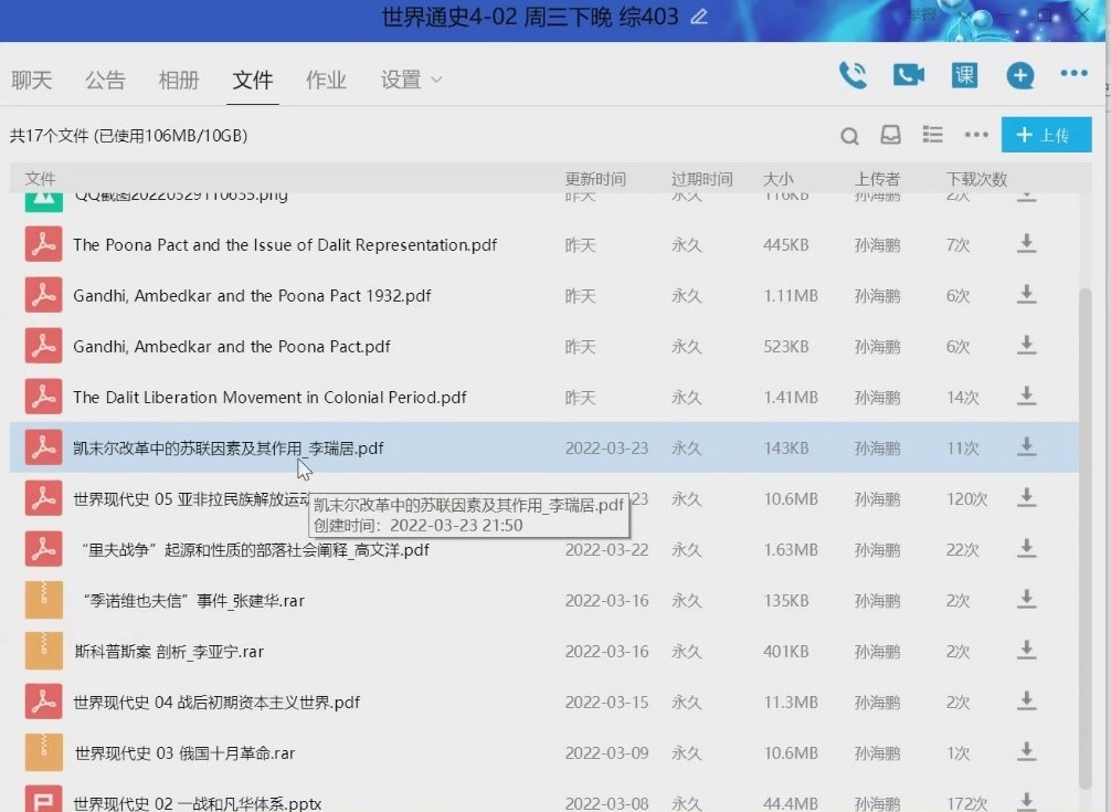 一是課前準備按部就班不馬虎:課前15分鐘,孫海鵬把PPT和與課程相關的論文上傳至QQ群,引導學生預習。根據教學安排,孫老師已在授課前兩天就提前錄制好授課視頻。