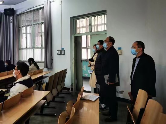 為全方位了解和監(jiān)督線上教學(xué)運(yùn)行狀況和教學(xué)質(zhì)量水平,2022年11月8日上午第三、四節(jié)課,黨委常委、副校長(zhǎng)孟慶瑜帶領(lǐng)教務(wù)處、教評(píng)教發(fā)中心相關(guān)人員深入一線課堂開(kāi)展專項(xiàng)檢查督導(dǎo)。