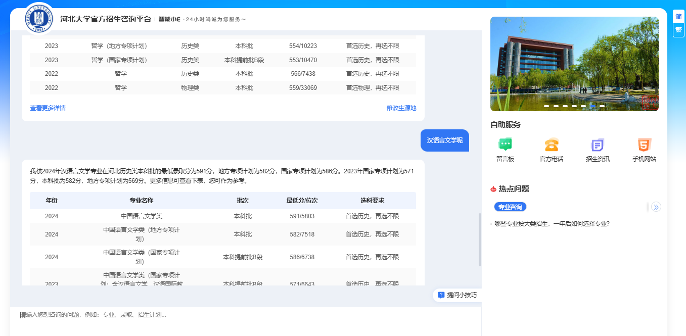 【河北大學】智能招生問答系統已經華麗大變身