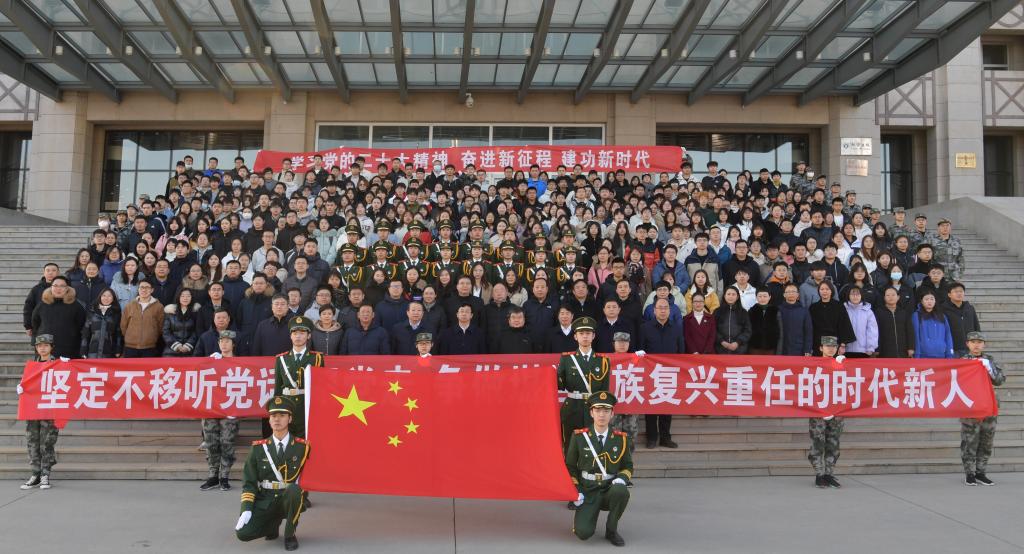 課前,在主樓廣場上舉行了莊嚴的升國旗儀式。學校領導郭健、王培光、楊立海、申世剛、陳紅軍、徐建民、倪志宇、孟慶瑜、單耀軍、過常寶出席升旗儀式,學校各部門、各學院相關負責人及師生代表300余人參加升旗儀式。
