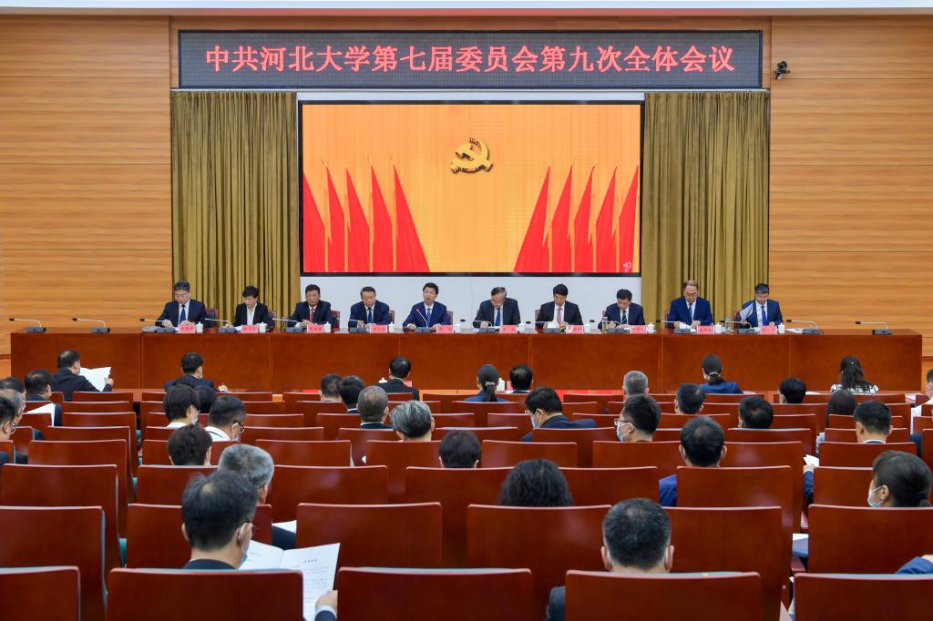 中國共產黨河北大學第七屆委員會第九次全體會議,于2023年6月5日在河北大學五四路校區召開。出席本次全會的有學校黨委委員25名。學校紀律檢查委員會委員和有關負責同志列席會議。邀請學習貫徹習近平新時代中國特色社會主義思想主題教育省委第二十巡回指導組負責同志列席全會第一次全體會議。