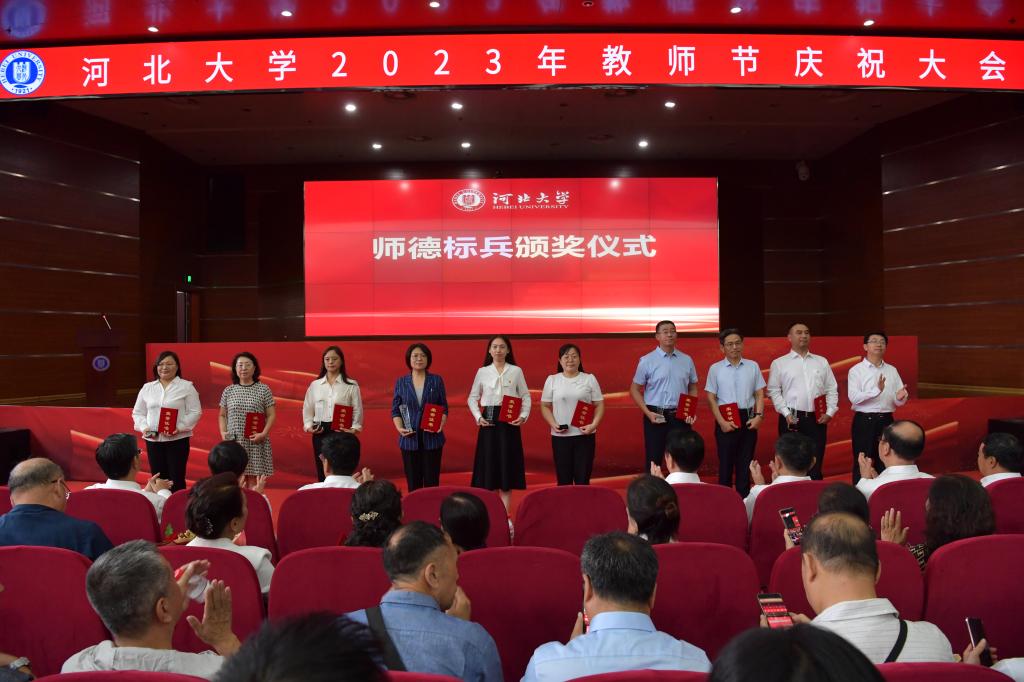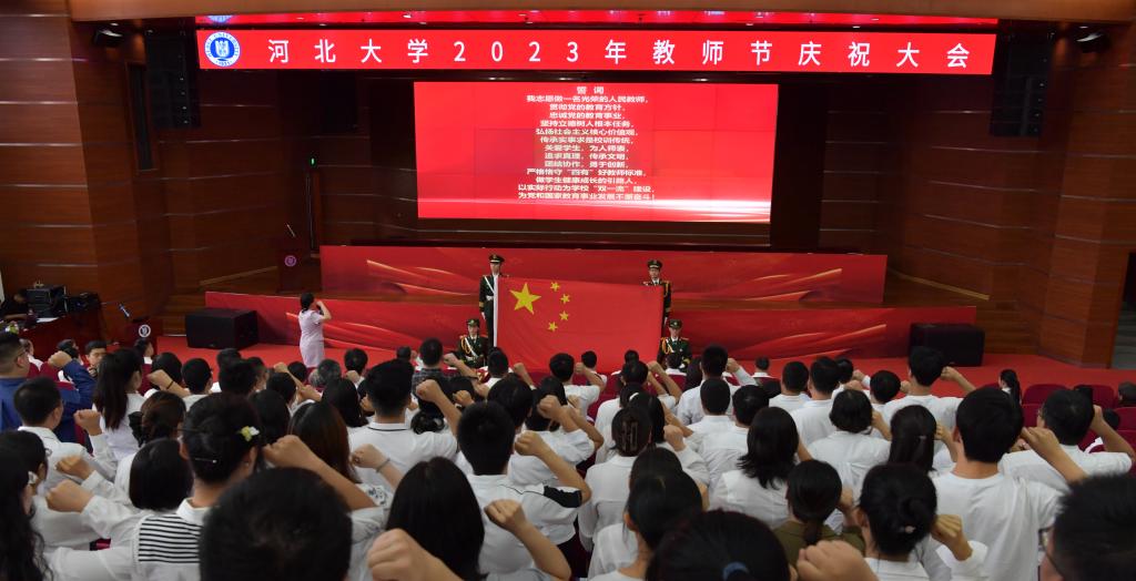 躬耕教壇,強(qiáng)國(guó)有我。9月10日下午,河北大學(xué)在七一路校區(qū)圖書館報(bào)告廳隆重舉行2023年教師節(jié)慶祝大會(huì),向全校教師送上衷心祝福。學(xué)校領(lǐng)導(dǎo)郭健、楊立海、申世剛、陳紅軍、徐建民、倪志宇、孟慶瑜、胡力軍、過常寶出席大會(huì)。退休教職工代表、年度師德標(biāo)兵、新入職教師代表、中層單位的主要負(fù)責(zé)同志及學(xué)生代表參加會(huì)議。會(huì)議由黨委副書記楊立海主持。