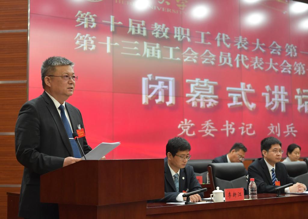 大會(huì)號(hào)召,全校教職工要緊密團(tuán)結(jié)在以習(xí)近平同志為核心的黨中央周圍,堅(jiān)持不懈用習(xí)近平新時(shí)代中國(guó)特色社會(huì)主義思想凝心鑄魂,認(rèn)真落實(shí)全國(guó)教育大會(huì)精神和教育強(qiáng)國(guó)建設(shè)規(guī)劃綱要,在學(xué)校黨委的領(lǐng)導(dǎo)下,傳承優(yōu)良傳統(tǒng),扎根燕趙大地,胸懷祖國(guó)人民,一體推進(jìn)教育發(fā)展、科技創(chuàng)新、人才培養(yǎng),決戰(zhàn)“十四五”、決勝“雙一流”,奮力開創(chuàng)河北大學(xué)高質(zhì)量發(fā)展新局面,為加快建設(shè)經(jīng)濟(jì)強(qiáng)省、美麗河北,為強(qiáng)國(guó)建設(shè)、民族復(fù)興偉業(yè)作出新的更大貢獻(xiàn)!