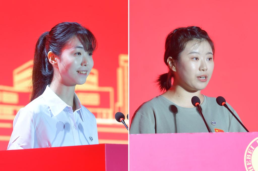 新生代表,歷史學(xué)院2024級博物館專業(yè)碩士研究生張玉晴、2024級質(zhì)量管理工程專業(yè)本科生劉勃含分別表示,要把個人理想與國家命運(yùn)、民族復(fù)興緊密聯(lián)系在一起,以實際行動奮力書寫為中國式現(xiàn)代化挺膺擔(dān)當(dāng)?shù)那啻浩隆?/p>