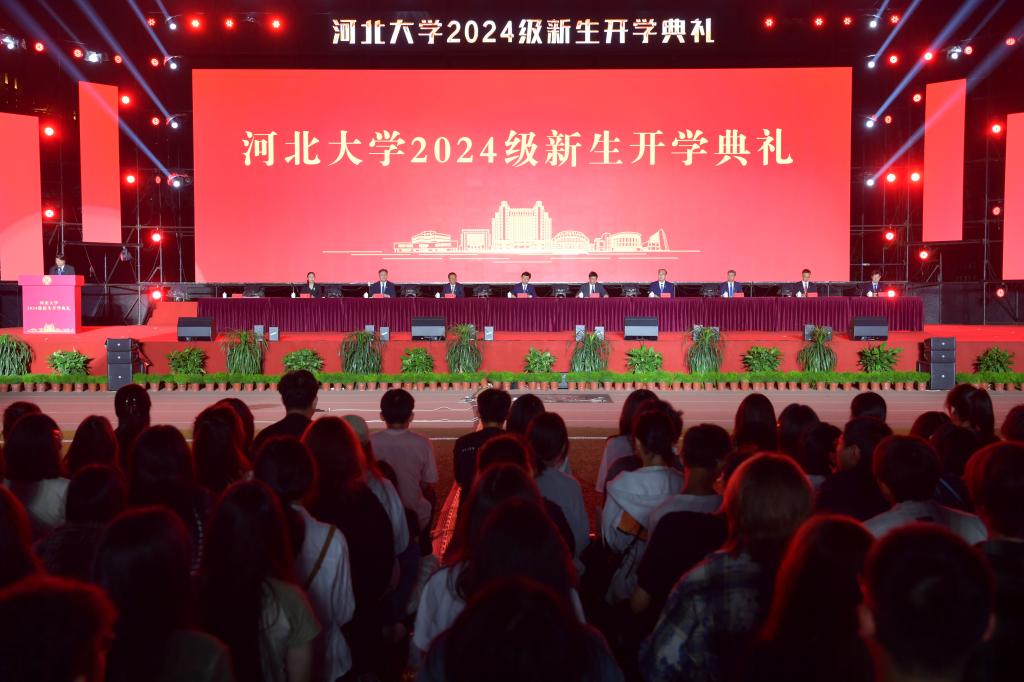 典禮上,黨委書記郭健代表學(xué)校向2024級全體新同學(xué)表示熱烈的祝賀和誠摯的歡迎。他通過講述四個河大人的故事,帶大家走近河北大學(xué):老校長華南圭先生的故事,彰顯了河大人教育報國、育人興邦的愛國精神;楊寶忠教授的故事,彰顯了河大人潛心學(xué)術(shù)、持之以恒的治學(xué)精神;白洋淀水體治理團(tuán)隊的故事,彰顯了河大人心懷人民、服務(wù)國家的奉獻(xiàn)精神;大學(xué)生創(chuàng)新創(chuàng)業(yè)團(tuán)隊的故事,彰顯了河大人敢為人先、追求卓越的創(chuàng)新精神。