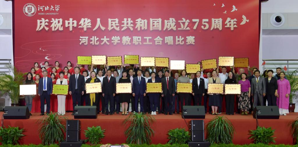 黨委書記郭健在致辭中指出,舉行“河北大學(xué)慶祝中華人民共和國成立75周年教職工合唱比賽”,這是用歌聲抒發(fā)愛國之情、砥礪強(qiáng)國之志的一次盛會,也是全校師生深入學(xué)習(xí)貫徹黨的二十屆三中全會、全國教育大會精神,以河北大學(xué)高質(zhì)量發(fā)展服務(wù)教育強(qiáng)國建設(shè)的誓師大會。郭健強(qiáng)調(diào),全校上下要更加緊密地團(tuán)結(jié)在以習(xí)近平同志為核心的黨中央周圍,把思想和行動統(tǒng)一到黨中央決策部署上來,堅(jiān)持不懈用習(xí)近平新時(shí)代中國特色社會主義思想鑄魂育人,進(jìn)一步深化學(xué)校綜合改革,加快建設(shè)一流高水平大學(xué),辦好人民滿意的教育,為加快建設(shè)經(jīng)濟(jì)強(qiáng)省、美麗河北,為推進(jìn)強(qiáng)國建設(shè)、民族復(fù)興偉業(yè)作出新的更大貢獻(xiàn)。