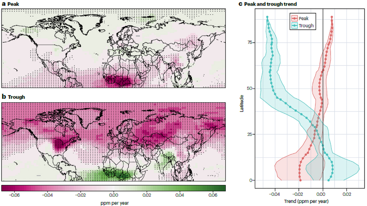 大氣CO2濃度峰值和谷值變化趨勢(shì)