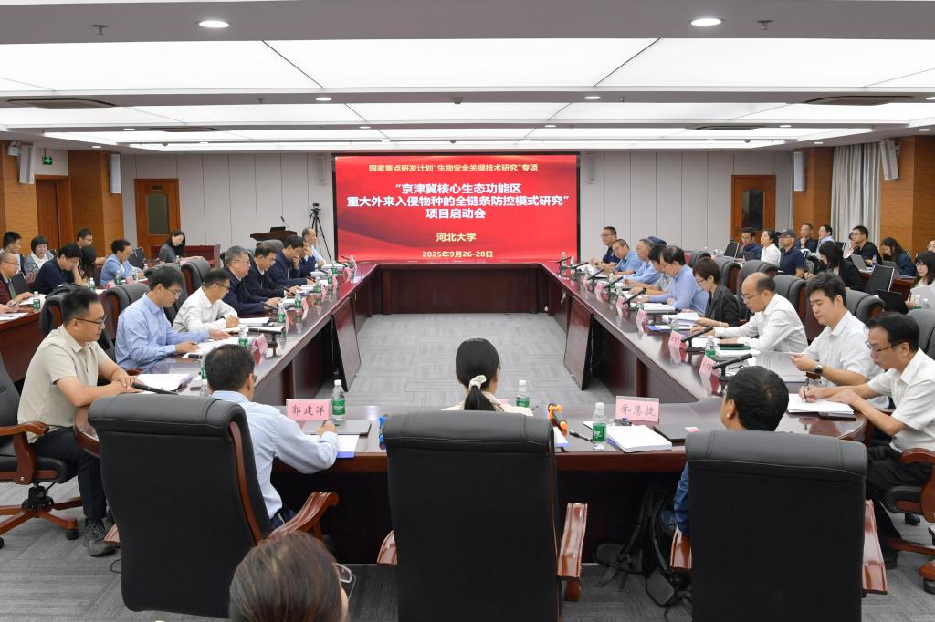 9月27日—28日,由生命科學學院陳立教授擔任項目負責人的國家重點研發計劃“生物安全關鍵技術研究”重點專項“京津冀核心生態功能區重大外來入侵物種的全鏈條防控模式研究”的啟動會暨實施方案論證會在河北大學召開。中國生物技術發展中心、河北省科學技術廳、河北省教育廳有關處室負責人,項目咨詢專家組成員、項目組主要成員和參研單位代表等60余人參加會議。學校黨委書記劉兵出席會議并致辭。會議由學校黨委常委、副校長王川主持。