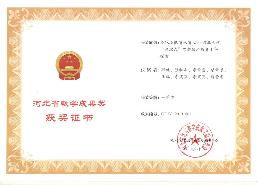 團隊在核心期刊以上刊物發表教研、科研論文130余篇,出版《高校思想政治理論課微電影教學成果叢書》、《思想道德修養與法律基礎》(精彩教案)等10多部,獲得國家級教學成果獎一等獎1次、河北省教學成果獎一等獎1次、二等獎2次。