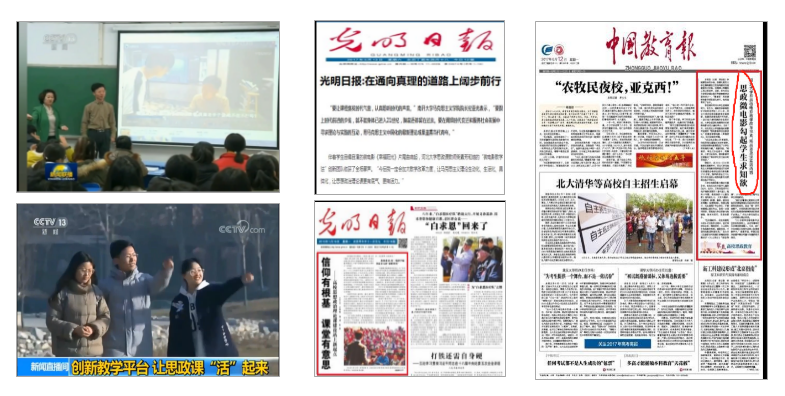 教研室主辦三次全國性高校思政課微電影教學研討會,120所高校來我校交流。8年來,我校微電影教學已經推廣到京、津、冀、湘、鄂、豫、皖、蘇、浙、閩、黑、吉、遼、陜、甘、寧、蒙等數十所高校。2015年微電影教學法入選“高等教育十大關鍵詞”。CCTV-1、CCTV-13、CCTV-6以及光明日報等也對我校思政思政教學改革報道20余次。