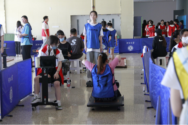 因測試工作時間緊、任務重,體育教學部強化責任意識,發揚團隊精神,積極探索新思路,大膽創新新舉措。在測試組織方面,采用系統預約、崗位負責的新形式,學生可以根據個人實際情況提前預約測試時間。測試工作實行崗位負責制,每位測試教師帶領若干名志愿者負責一個項目的測試工作,及時解決測試中出現的各類問題。通過合理安排預約測試,實時調配與之對應的測試設施、測試教師和志愿者,既提高了測試工作效率,又節省了學生的等待和測試時間。在測試流程方面,采用科學分組、全程引領的新形式,確保整個測試過程銜接順暢、井然有序,既避免了安全隱患,又杜絕了學生作弊現象。